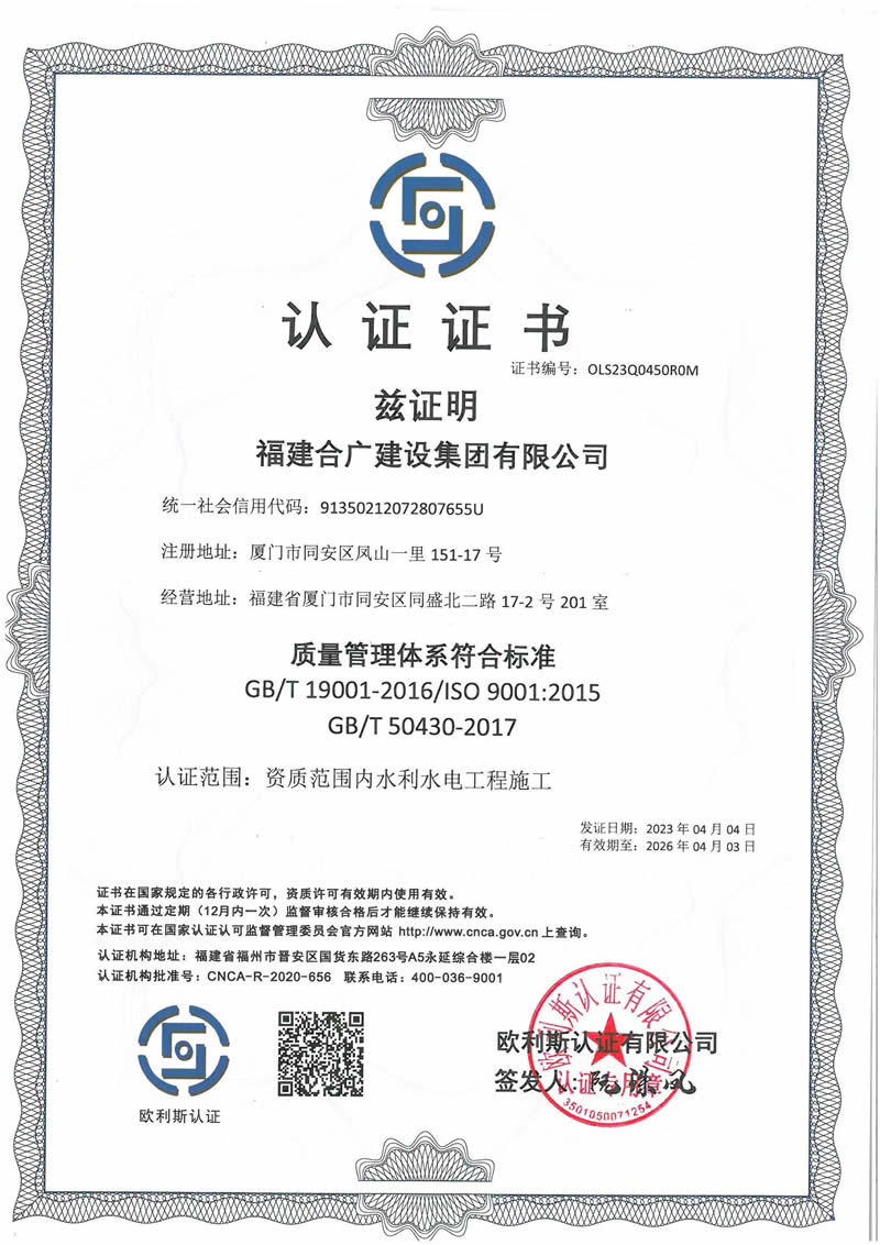 2023 GB/T 19001-2016/ISO 9001:2015 GB/T 50430-2017 質(zhì)量管理體系