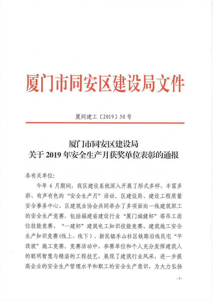 廈同建工【2019】50號